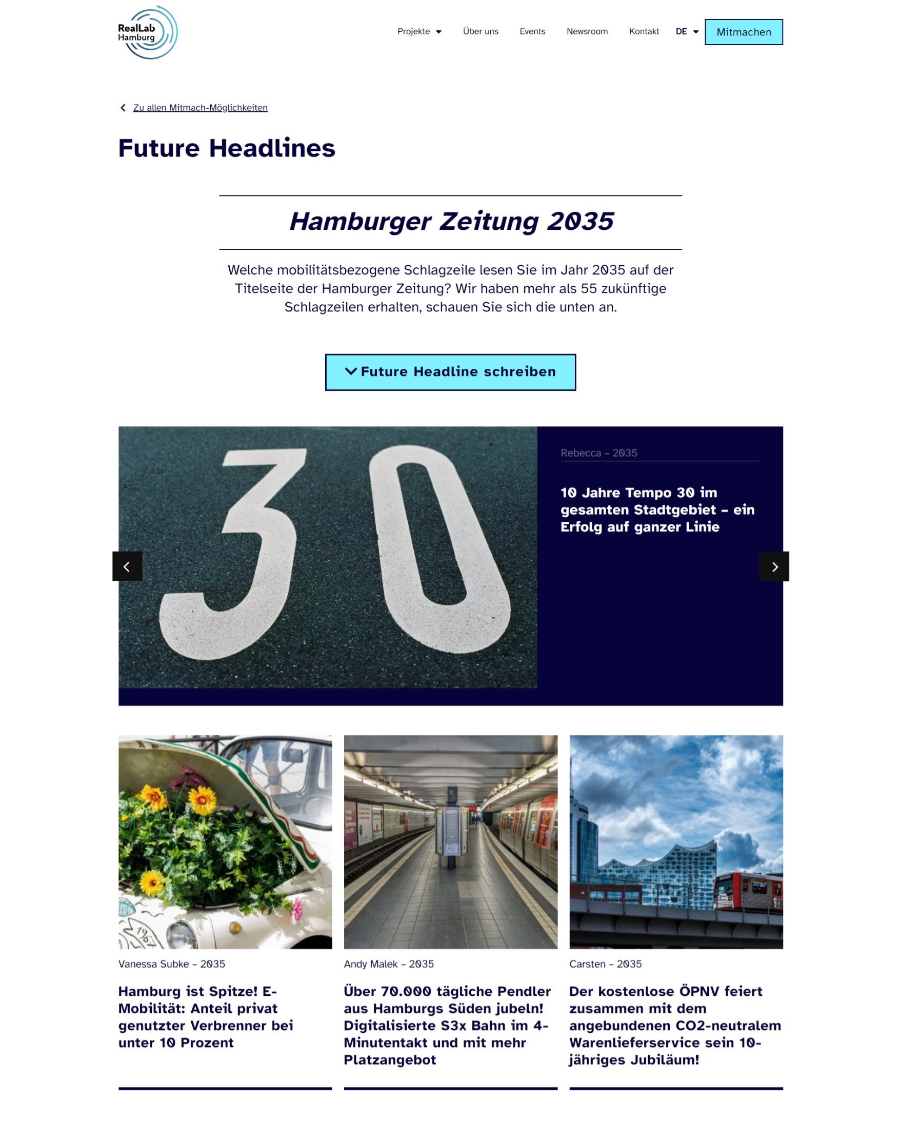 Conceptualizing and designing a website for an innovative online participation process for Hamburg citizens to co-create the future of mobility.